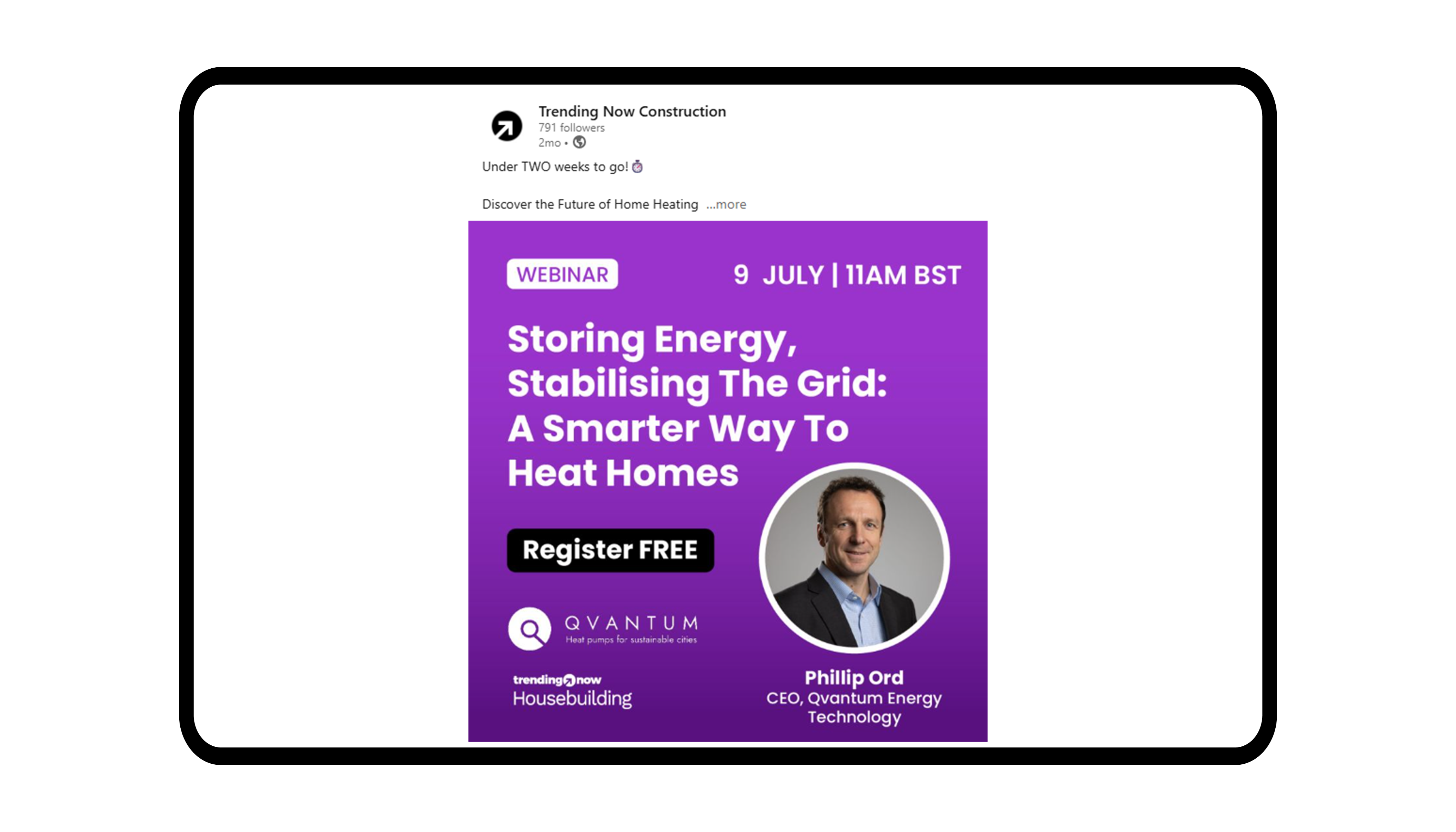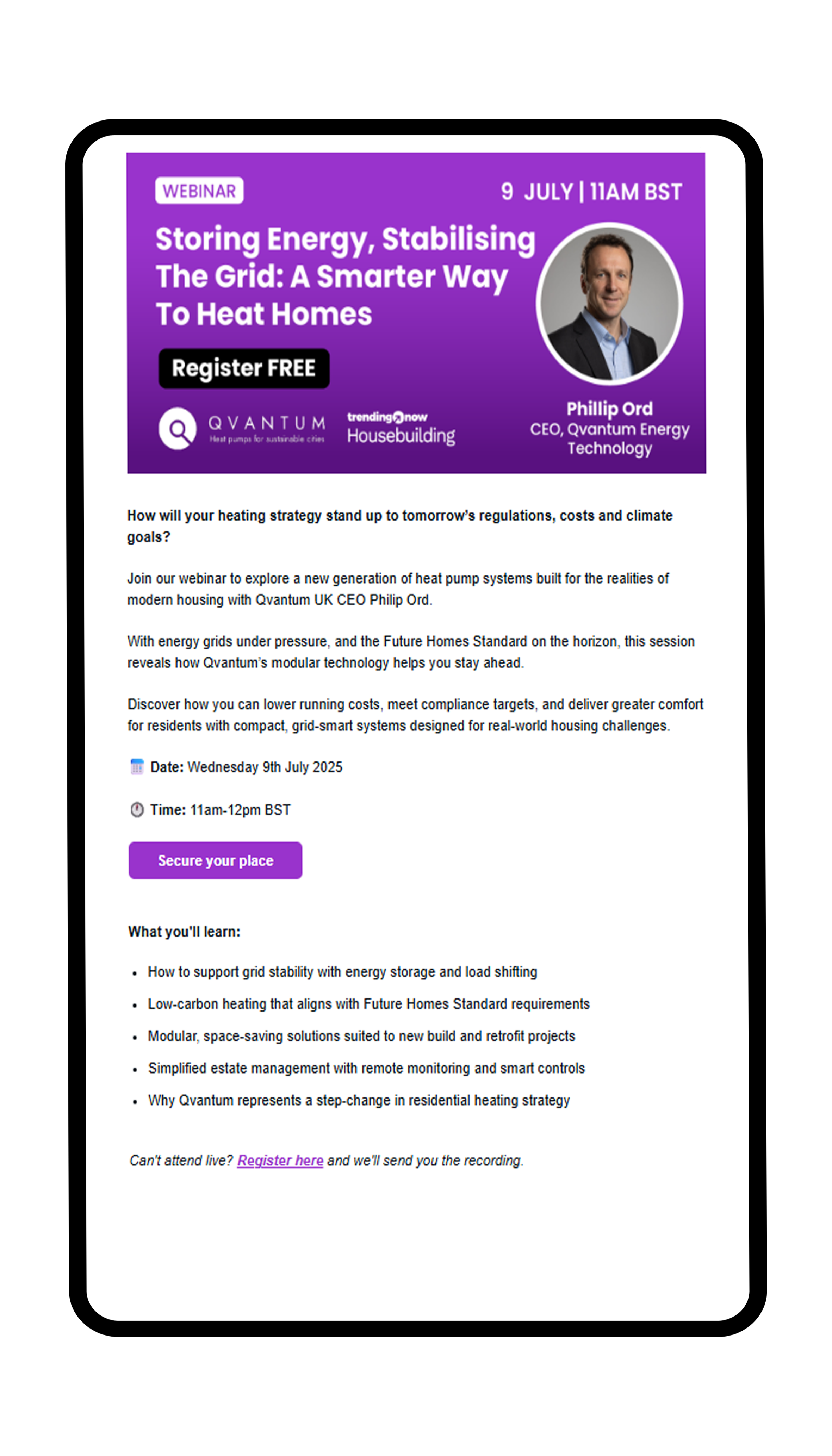 We provided targeted solus emails to our relevant databases, advertising and eductaing our database with information about Qvantum and the webinar we hosted.